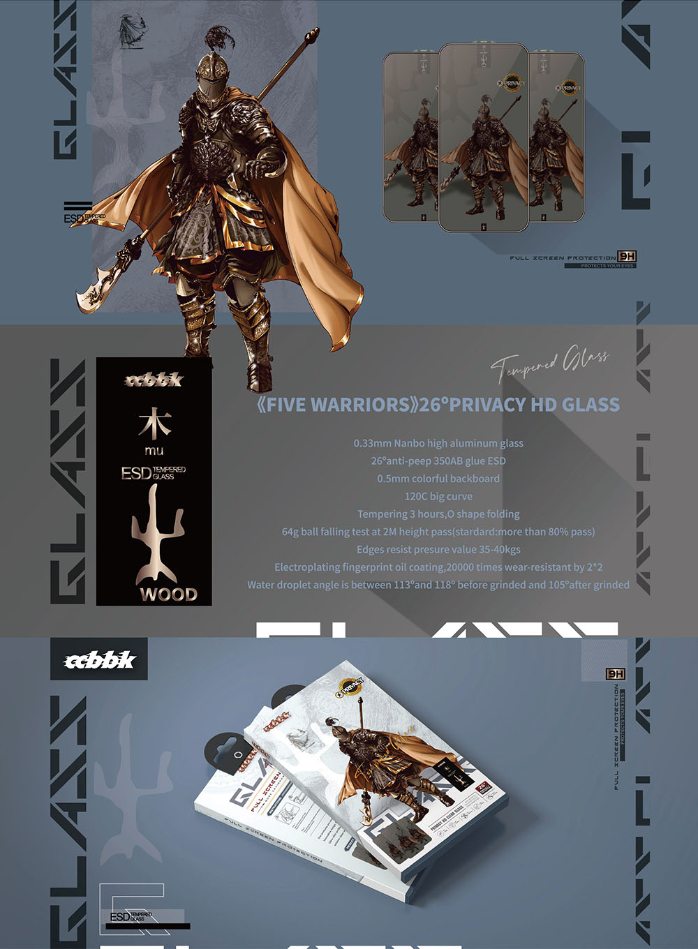 《五行战士系列 木甲》高清26度防窥钢化膜26ºPRIVACY HD GLASS